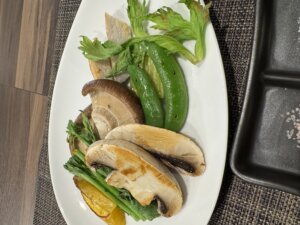 黄人参、ジャンボマッシュルーム、白セロリなどなど、オーナーのこだわりの有機野菜がずらっと並ぶ。なんとも嬉しくて鉄板焼き屋なのに、「やさいや」のネーミングのコンセプトに納得。こんなお店を探してたんだよね!と思わず「いいね!」を沢山押したい気分でした。罪悪感ないので、全て焼いていただきお腹いっぱいいただきました。