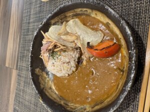 そして、締めにはご飯物をチョイス。私はビーガンカレーをいただきました。動物性の食材は使わないというカレーが、こっくりと美味しかったです。